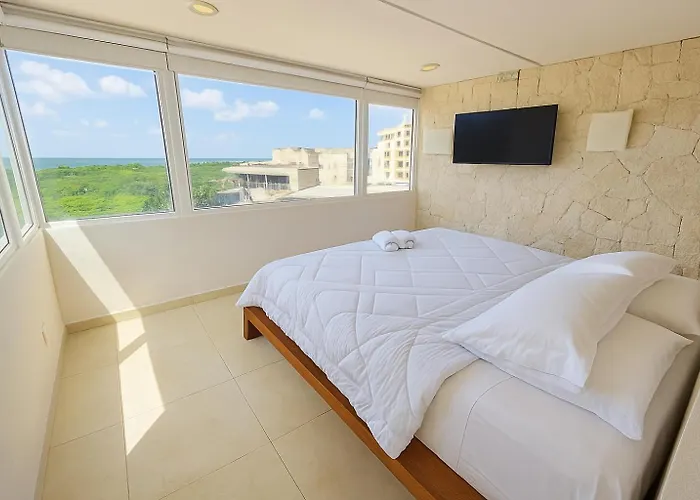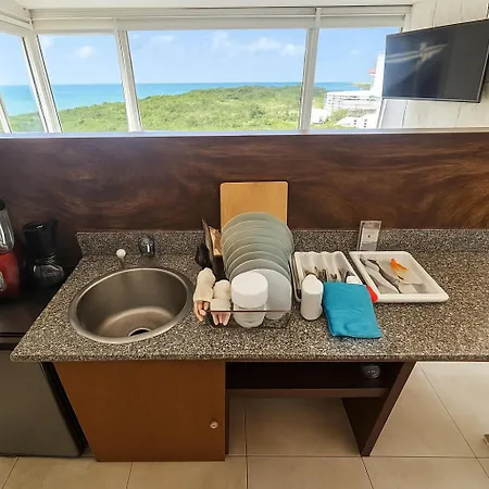 O Beach Front Condos In Hotel Zone Cancún está localizado em Cancún, a 12 minutos a pé da Playa Delfines, e oferece piscina ao ar livre. Este apart-hotel livre de fumaça dispõe de 8 quartos e de confortos como loja de conveniência.
